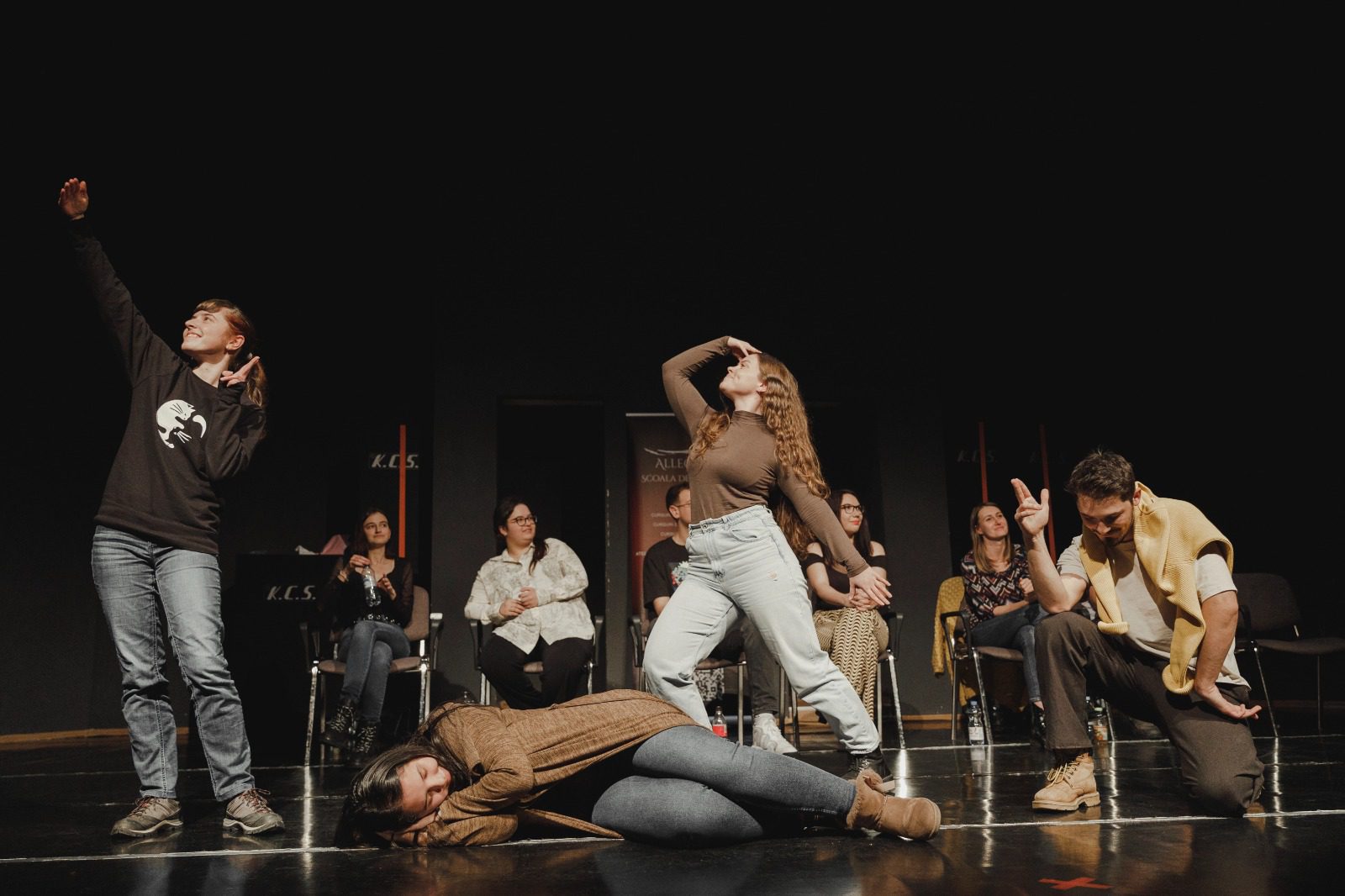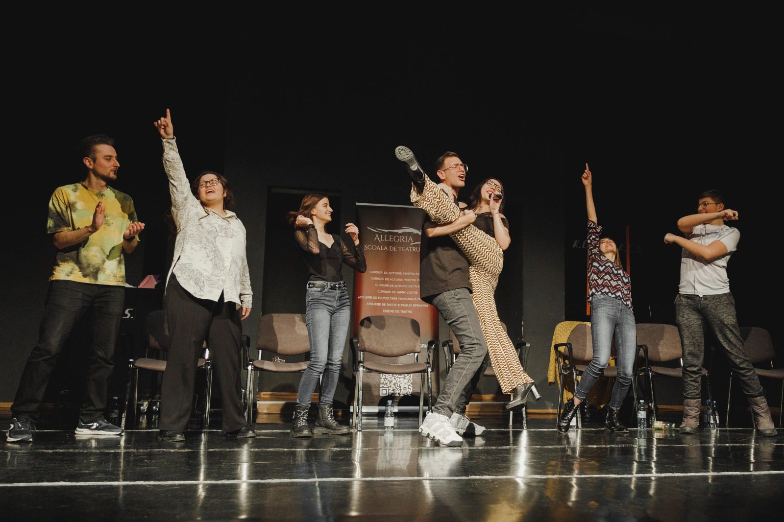 Spectacolul este interactiv, publicul va propune temele de improvizație pentru cei de pe scenă.