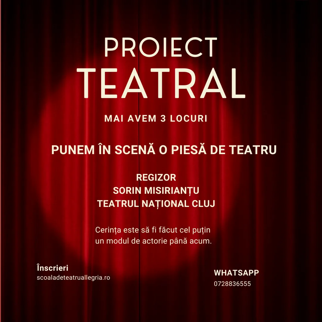 Începând cu 18 februarie, Școala de Teatru Allegria lansează un nou proiect teatral de comedie, realizat în colaborare cu Sorin Misirianțu, regizor la Teatrul Național din Cluj și unul dintre cei mai apreciați regizori de comedie din România.